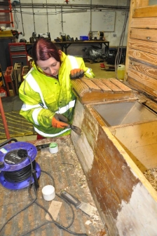Working on the platform seat on the Douglas end. © Andrew Scarffe