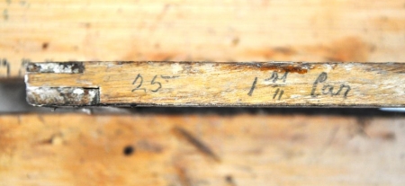 Careful removal of the layers of paint and varnish revealed that some of the sashes also carried numbers written in pencil. This one also has this confusing reference on the right hand side. © Andrew Scarffe