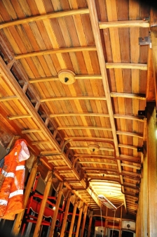 Following numerous evening’s work and a marathon session on the 10th/11th December 2016, the inside of the roof has been stripped, cleaned and is ready for varnishing. Looking towards the Douglas end. © Andrew Scarffe