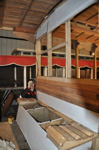 Work has moved onto the Ramsey end on the 2nd of March – Paint has been stripped from the canopy and all the woodwork has been cleaned and prepared for painting and varnishing. © Andrew Scarffe