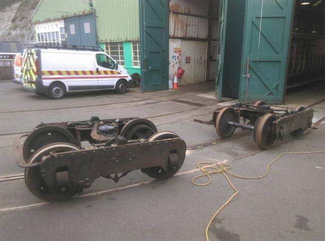 Car 14s bogies were taken out of the lower shed today for steam cleaning. © Cade Williamson