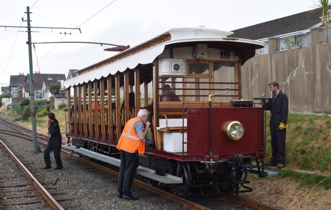 Car 14 after the conclusion of its first test run at Onchan Head.
