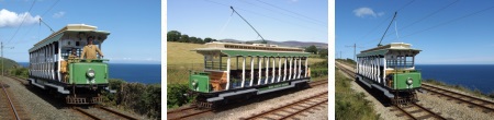 Departure from Ramsey was made shortly after the service car, arriving back at Derby Castle Car Sheds at 11:30. A rare passenger carrying trip was made inside the shed on Road 2, with participants then unloading on the fanwork to view the progress to Ratchet Car No.14 and the new displays in the Manx Electric Railway Museum. Trailer No.60 was then collected from the shed by Car No.16, and a rare trip from Derby Castle to Fairy Cottage was made, believed to be the first time a passenger carrying service has ever reversed southbound there, and especially rare for it to be the green pairing of No.16 and No.60.