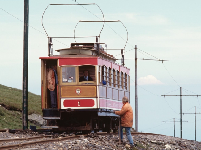 Snaefell No.1 at the line’s summit just east of the station on the 21st of June 1991. © Colin Clifton