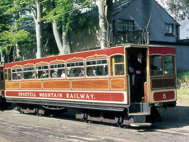 The motorman of Snaefell No.5 waits to depart Laxey on the 4th of June 1974. © Richard Pryke