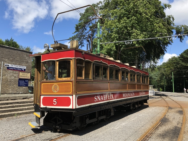 Snaefell No.5 stands at Laxey Station on the 29th of July 2019. © Alex Fairlie