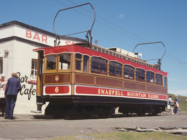 Snaefell No.6 waits to depart from the Summit on the 21st of June 1991, a clear sunny day as this photo shows! © Colin Clifton