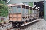 Trailer 54 was last used in passenger service on 18th August 1971 when it made two return trips between Derby Castle and Laxey hauled by Car 14. It was then stored in Laxey Car Shed and later, from, 2002 until 2009 at the former Homefield Bus Garage.