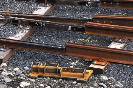 The new points have been made from “traditional” sized rail, being of much smaller section than the new grooved rail, as is readily apparent in the picture. One of the special jointing plates to join together the different sized rails can be seen in the foreground. © Andrew Scarffe